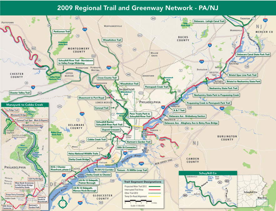 Map of existing and projected future trails in the Philadelphia Area in 2009.